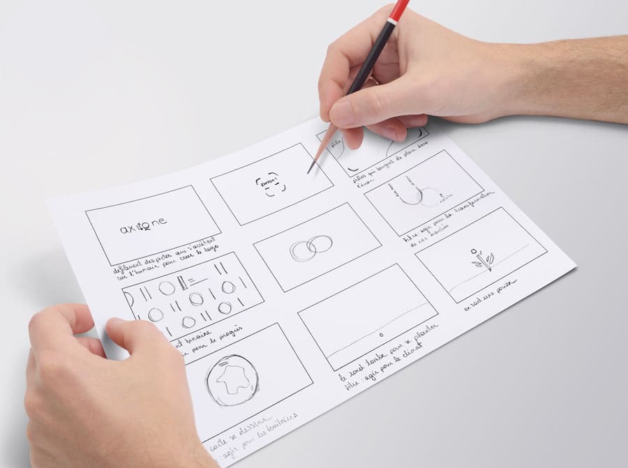 Storyboard : script en image, sous forme de crayonnés